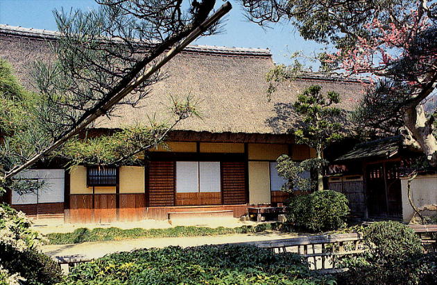 来た。今では全国でも少ない茅葺きの屋根である。上右の写真が垣根(塀?)越しに見た母屋である。屋根が少し見えている。