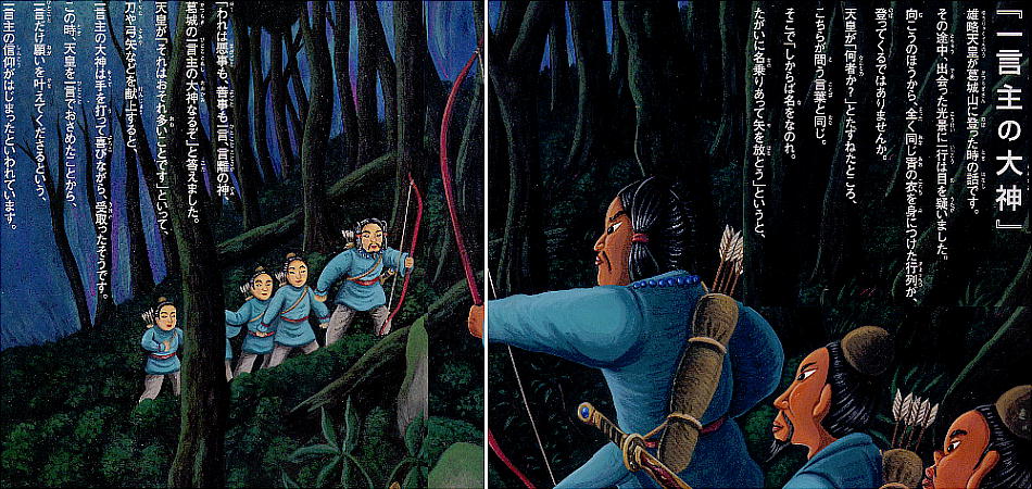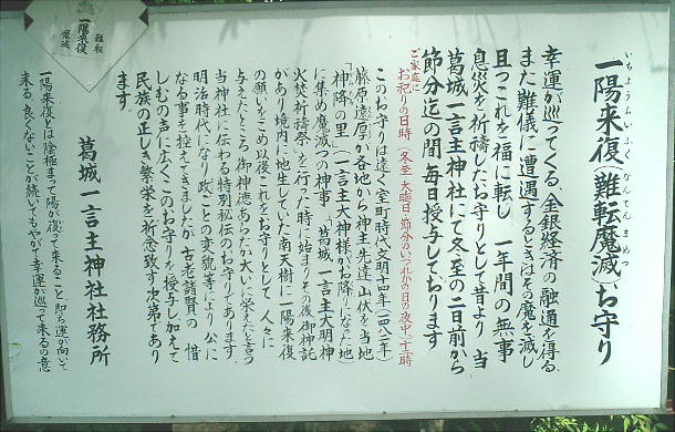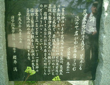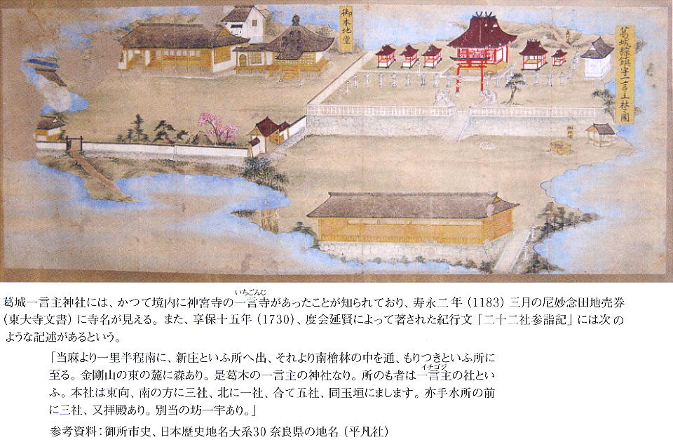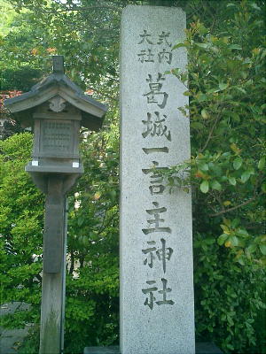古事記によると、雄略天皇に名を問われ「吾は悪事も一言、善事も一言、言い離つ神 葛城の一言主の神ぞ」と答