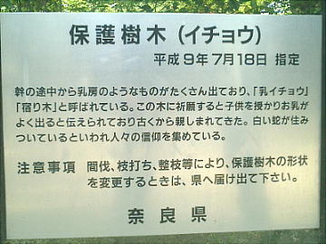 が沢山ぶら下がっている。こうした気根を持つ銀杏は珍しいそうである。樹の前にある説明板には「この樹に祈れ