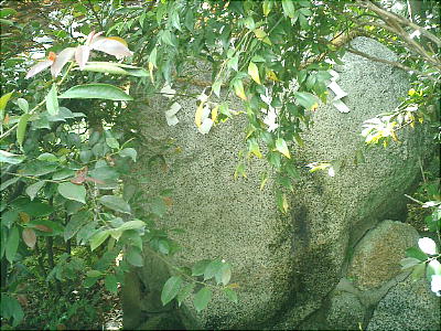 の三つに切ってここへ埋めたという「土蜘蛛塚」が本殿の右側にある。