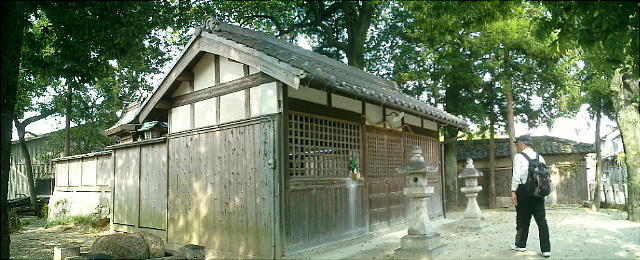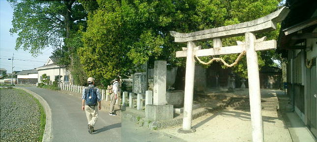 く。この道は直進するとJR御所駅に達するが、その途中、左側に大きな鳥居があり、広い参道が通じている。