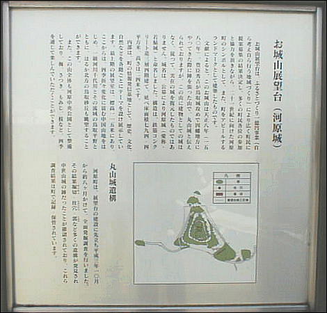 宮本武蔵の里を見て、国道53号線を鳥取へ鳥取へと急いでいる途中で、「河原城」なるものが地図に載っていた。