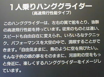 なんでハングライダーがと思ったら、ここ河原町はハングライディングのメッカなのだそうだ。関西一円からライダー達がやってきてここで大会も開かれるらしい。