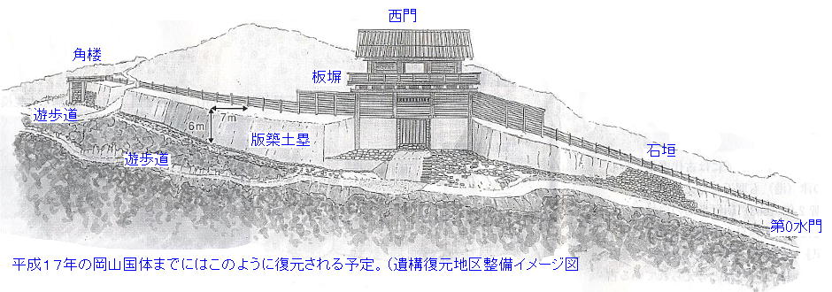 りと見学することができた。山頂からは吉備路の野や山が一望に眺められる。古代山城としてはその規模、構造は我が国最