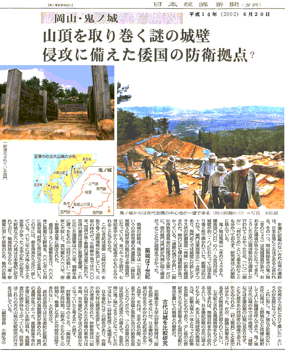 の二つに大別できるが、鬼ノ城は記録にないという点では後者の神籠石式山城に含まれるが、その規模から見ると前者の朝