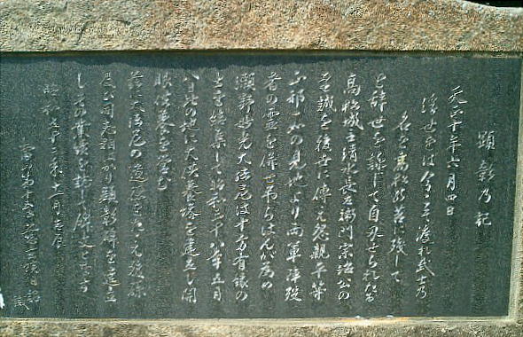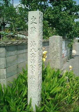 城址公園の向かいに、「清水宗治公自刃の跡」と顕彰碑が建てられている。
