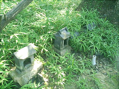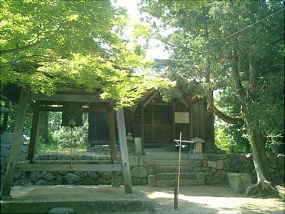 前方部の途中から上に登れるようになっていて、頂上には神社がある。そばに風化した石棺が放置されているが、これはこの古墳