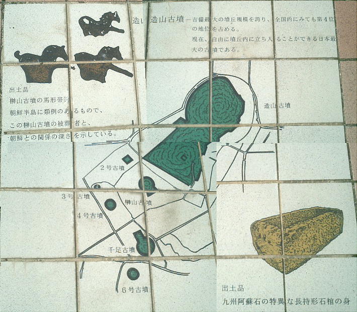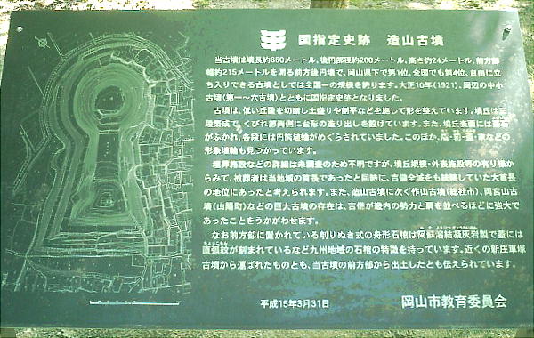 出しが造られるという巨大な古墳である。岡山県で1位、全国でも4位の規模を誇る。もともとあった低い丘陵を利用