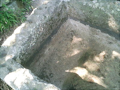 上二枚と下左の石片は、この石棺の蓋だった石という。