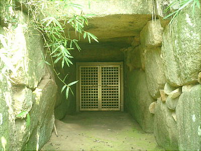 岡山県下三大巨石古墳のひとつ。内部にある石室は、巨大な幾つもの石を精密に組み合わせた横穴式の大空間で、入り口の