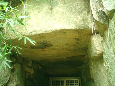 石室は鍵がかかっていたので格子から手を入れて写したのだがフラッシュを焚いてもうまく写っていない。中はめちゃくち