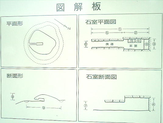 羨道とその奥の玄室に別れている。明治34年の調査で、須恵器、土師器などと並んで権力の強大さを示す刀剣・馬具・金