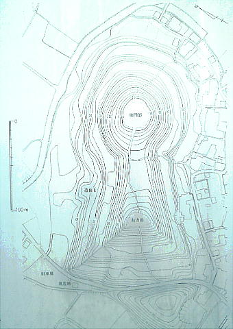 ら成る。造山古墳の少し後に築造されたもののようである。独立した小さな丘陵を削り、盛土をし整形して3段に築いている。古