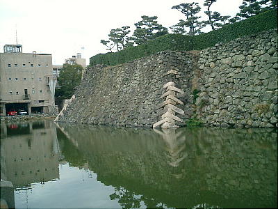 易い石を多く用いているため、それを補強するために造られたといわれる。現在の岸和田城は本丸跡と二の丸跡、石垣と堀が残るだけ
