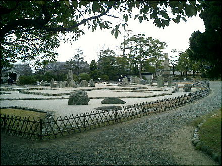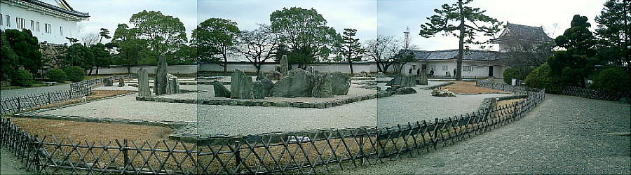 をテーマに石組みを配した石庭で、天守閣から俯瞰すると、その全景はなかなかのものらしい。今日は時間が無かったので天守閣には