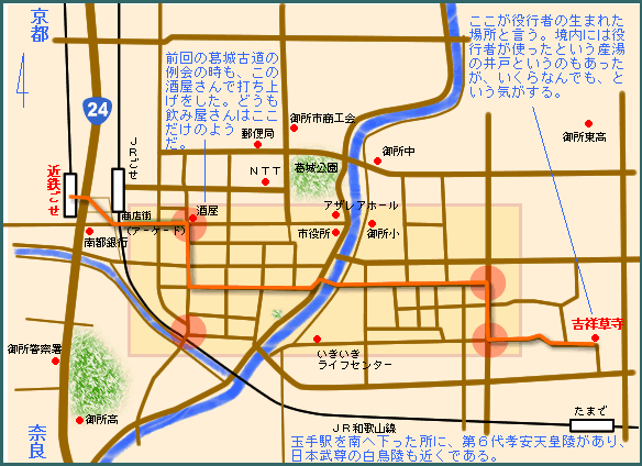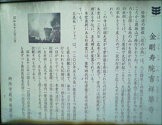 である。役行者が通ったとされる「行者街道」もあり、近鉄御所駅から、役行者の生誕地=吉祥草寺までの道のりを「御所まち」