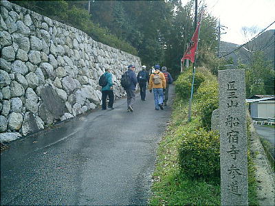 ここから「船宿寺」めざして田舎道を歩き出す。左手に金剛、葛城の山並みがすばらしい。雨に煙った幽玄な山並みも良かった