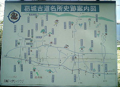 上左看板の、真ん中を横切る国道が24号線で、上部が「葛城の道」、下部が「巨勢の道」である。