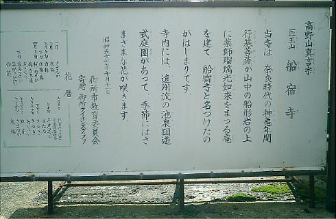 葛城山はすばらしかった。「船宿」という寺の名前は、行基が山上の岩が船の形に似ていたから、こう名付けたと説明版にある。