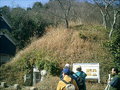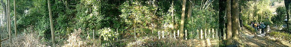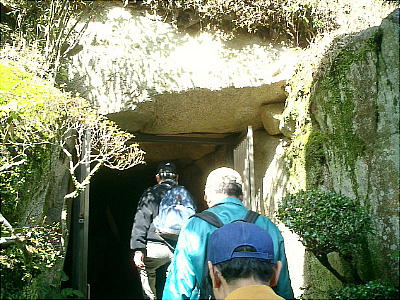 大穴持神社での昼食後、「八紘寺」の中を通り過ぎて再び県道へ出てしばらく行くと、巨勢道に面した丘陵の東斜面に横穴式石