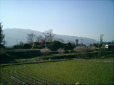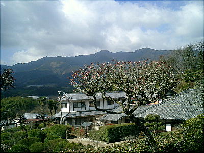 が、晴れ上がった山塊もすばらしい眺めだ。紅や白の梅の花がいまや盛りと咲き誇っており、その香りに包まれて歩いていくと、