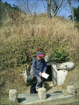 古墳があるとはわからない、横穴式石室の円墳である。入り口には低い柵があったが乗り越えれば中へ入れる。幸い懐中電灯