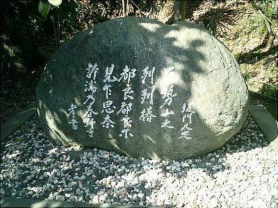 境内に石碑があり万葉集巻1の54歌が刻まれている。碑の揮毫は、元大阪大学名誉教授犬養孝氏である。