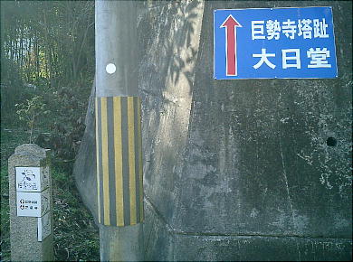 子院であったと言う。JR線路の脇にある大日堂が、かっての巨勢寺の中心地でその土壇の中央に約1.3m角の塔心柱(とうし