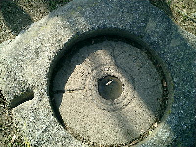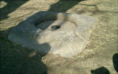 孔の周りに同心円上に三重の溝を掘り、これらを結ぶ排水溝を設けて進入した水を外部へ排水する構造になっている。細溝(水