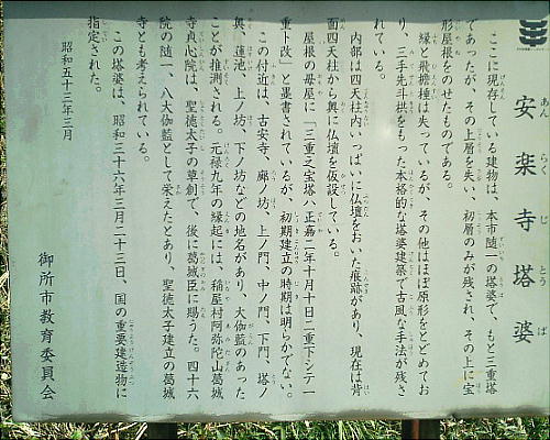 もつ安楽寺がある。国重要文化財安楽寺は大和時代の白鳳飛鳥期に聖徳太子の草創に拠るものとされる。開基当初は、聯全堂、