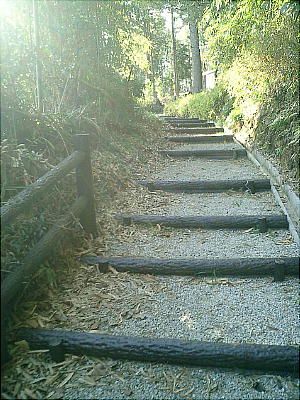 を上り切った山の中腹に大穴持神社がある。急な坂道が山上に向かって続いており、それが参道だが傾斜は急であり、中年太り