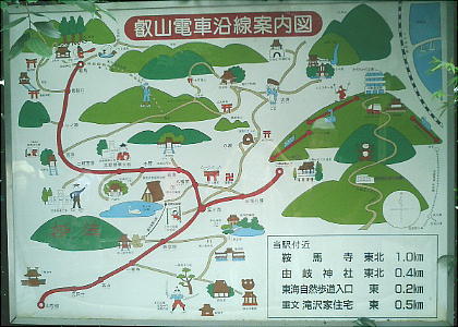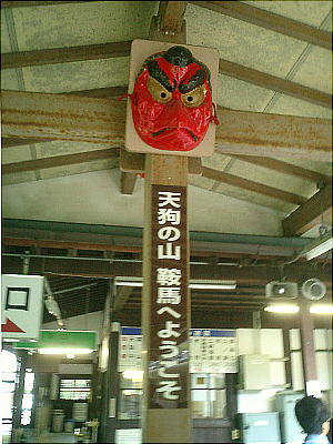 緑豊かな風景を楽しみながら走ること30分で鞍馬駅に到着。駅の待合室には、かわいいイラスト付きの