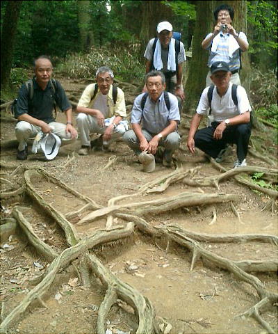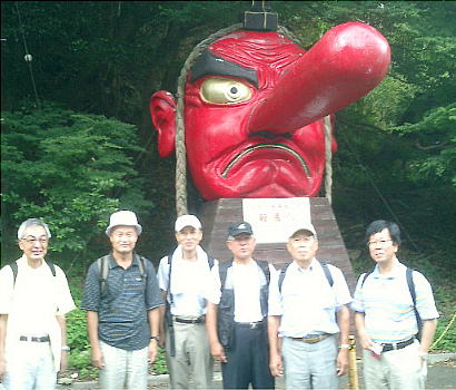 天狗の前で記念撮影。「僧正が谷」といえば講談や落語で有名な「天狗の里」である。「大岡裁き」とい