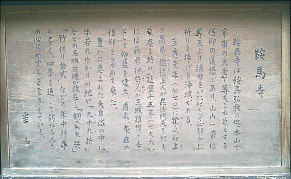 音を造像して併せ祀り、宿願を果たした。そして鞍を負った馬が鞍馬山を示したことにちなみ、鞍馬寺と