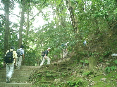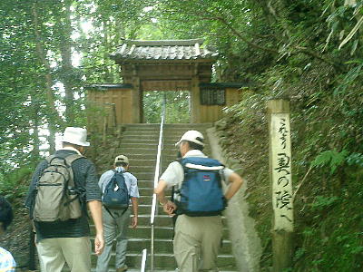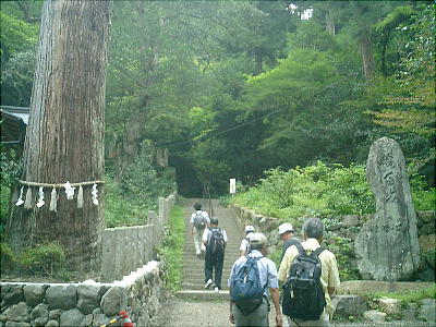 仁王門から本堂へと続く急坂は「九十九折の坂」として枕草子にも読まれている。由岐神社を抜けてひた