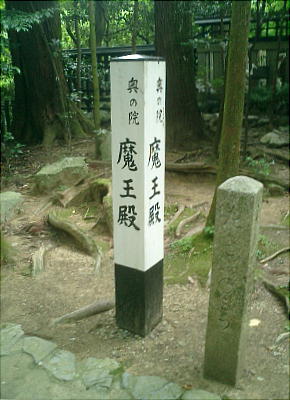 僧正が谷を抜け、極相林の間を降ってくると、明るく開けたところに「奥の院魔王殿」と言う小さな祠が