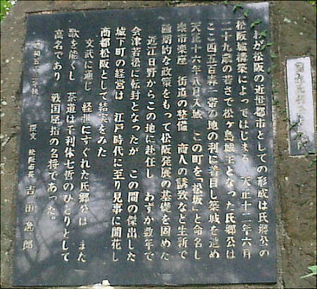 天正18年(1590)小田原攻めの軍功によって氏郷は、僅か2年松坂に在城しただけで、会津42万石へ転封した。代って城主となった