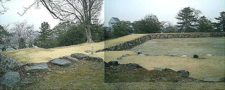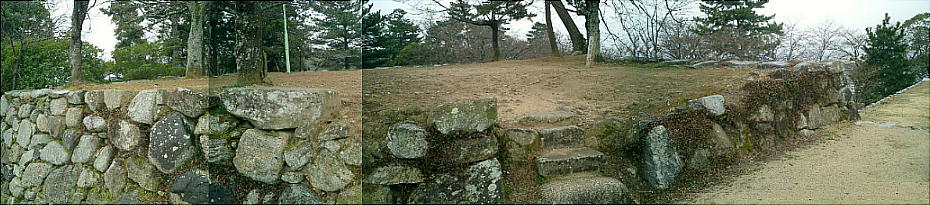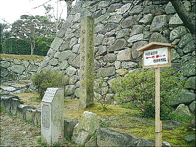 跡と裏門跡の2ヶ所だが、表門跡から眺める本丸跡の高石垣は見ごたえがある。