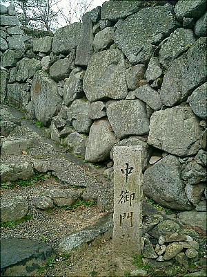 西門をでたところの石垣は補修工事中だった。