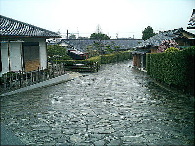 松阪城跡の西門から出ると、御城番長屋にでる。石畳の両脇に同じ間取りの長屋が並んでいる。時代劇に出てくるような長屋である。