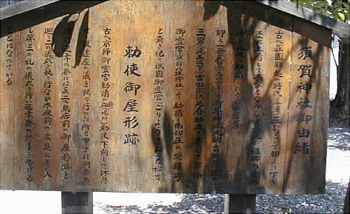 スサノオニミコトなどを祀っている。毎年10月9日の御霊祭には勇壮な馬駆けなどが古式に則って行われる。