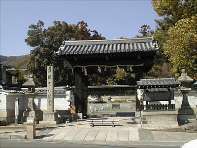 神社本殿正面向かって左手に、「是より東、山城の国」と彫られた道標が立っており、今でも京都府と大阪府の境になる。