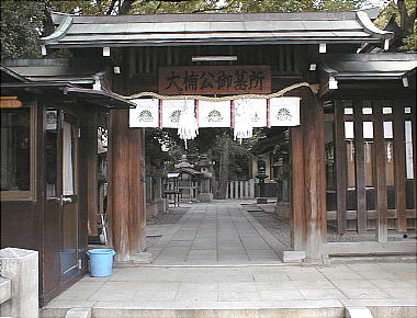 上が表神門。すぐ左手に高速神戸(神戸市地下鉄)の地下駅への入り口があり、右手には「大楠公墓所」への入り口(下)がある。