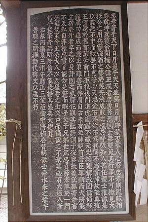 に戦死した楠木正成を祀る。弟正季と「七生報国」を誓って差し違えて死んだ。『太平記』はその様子を、