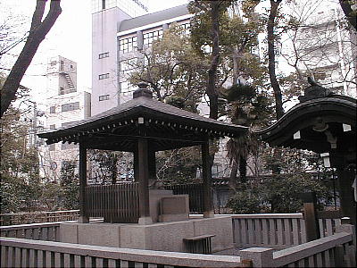 囲まれて中へ入れず亀石と石碑を写せなかった。普段なら乗り越えて撮すのだが、たまたまコワモテ風の右翼系らし