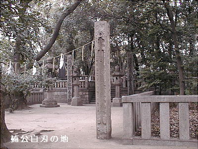 縦に細長い境内だ。図の右下が墓所で、左奥(上)が絶命した場所即ち戦没地である。