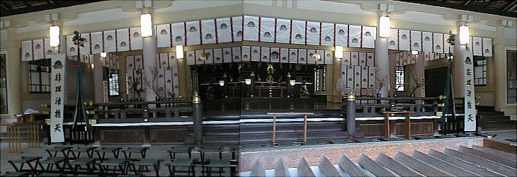 る表門も本殿も全壊し、当時ペチャンコになった写真が報道されていた。現在はすっかり元通りに復元された神社が、