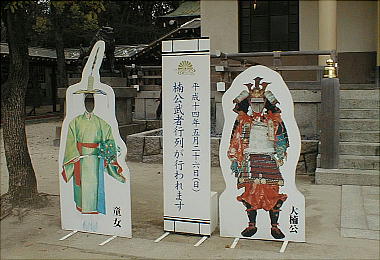 祭神: 楠木正成公(大楠公) 、楠木正行公(小楠公)及び湊川の戦で殉節した正成弟の正季(まさすえ)以下一族十六