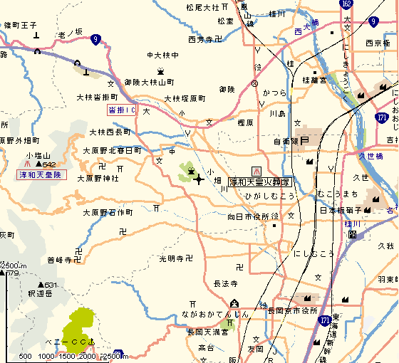 車塚住宅前のバス停を左へ入った住宅街の中に、淳和天皇の火葬塚(向日市物集女町)がある。『日本紀略』によると、承和7年