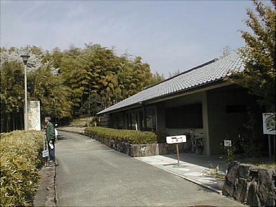が置かれており、左側には京都の伝統的な竹製品が陳列されていて、休憩所には大きな野点傘が立っている。資料館の左側